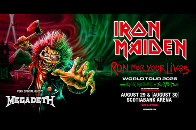 Scotiabank Arena, Toronto Iron Maiden Run For Your Lives World Tour Special guests Megadeth August 29 & 30, 2026 Scotiabank Arena IRON MAIDEN today announces the highly anticipated North American dates of their critically acclaimed RUN FOR YOUR LIVES WORLD TOUR. In celebration of their 50th Anniversary, the band will be performing at stadiums and major amphitheaters across […]
