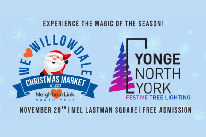 Mel Lastman Square, 5100 Yonge St., North York NeighbourLink North York’s 5th We Love Willowdale Christmas Market is Saturday, November 29th at Mel Lastman Square! 🛍️ Artisan Market 2-8pm 🎄Festive Tree Lighting Presented by the Yonge North York BIA 6:30pm 🎶 Community Sing-a-Long 7pm At the market you’ll find: – 50+ artisan vendors and small businesses – Live Entertainment 🎸 – Coca-Cola Holiday Caravan – Beaver Tails 🍩 […]